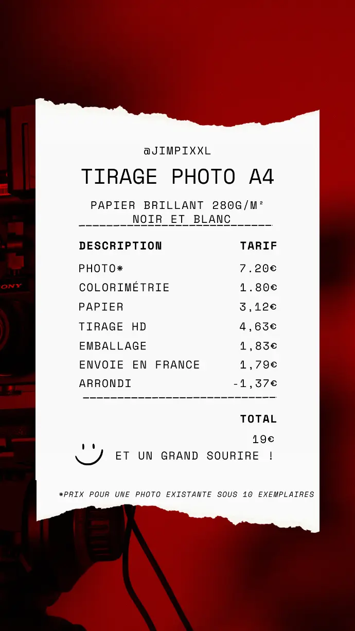 Tirage photo sur format A4, papier mat, grammage 180, noir et blanc.